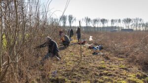 De winterlucht is strakblauw terwijl een klein groepje vrijwilligers zich bij het Gronddepot in Zeewolde verzamelt. Het rijp ligt op het gras en je adem vormt kleine wolkjes in de kou, maar de zon probeert